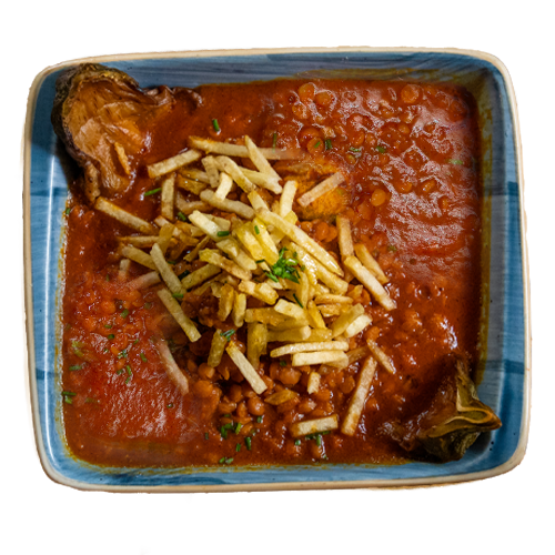 This comforting stew features creamy yellow split peas slow-cooked in Chef Javad’s special Persian tomato sauce, deeply infused with the unique tang of dried limes (Limoo Omani). Silky, melt-in-your-mouth slices of fried aubergine (eggplant) are the star, simmered gently in the sauce to absorb all the rich flavours. We often add hearty mushrooms for extra texture and depth.