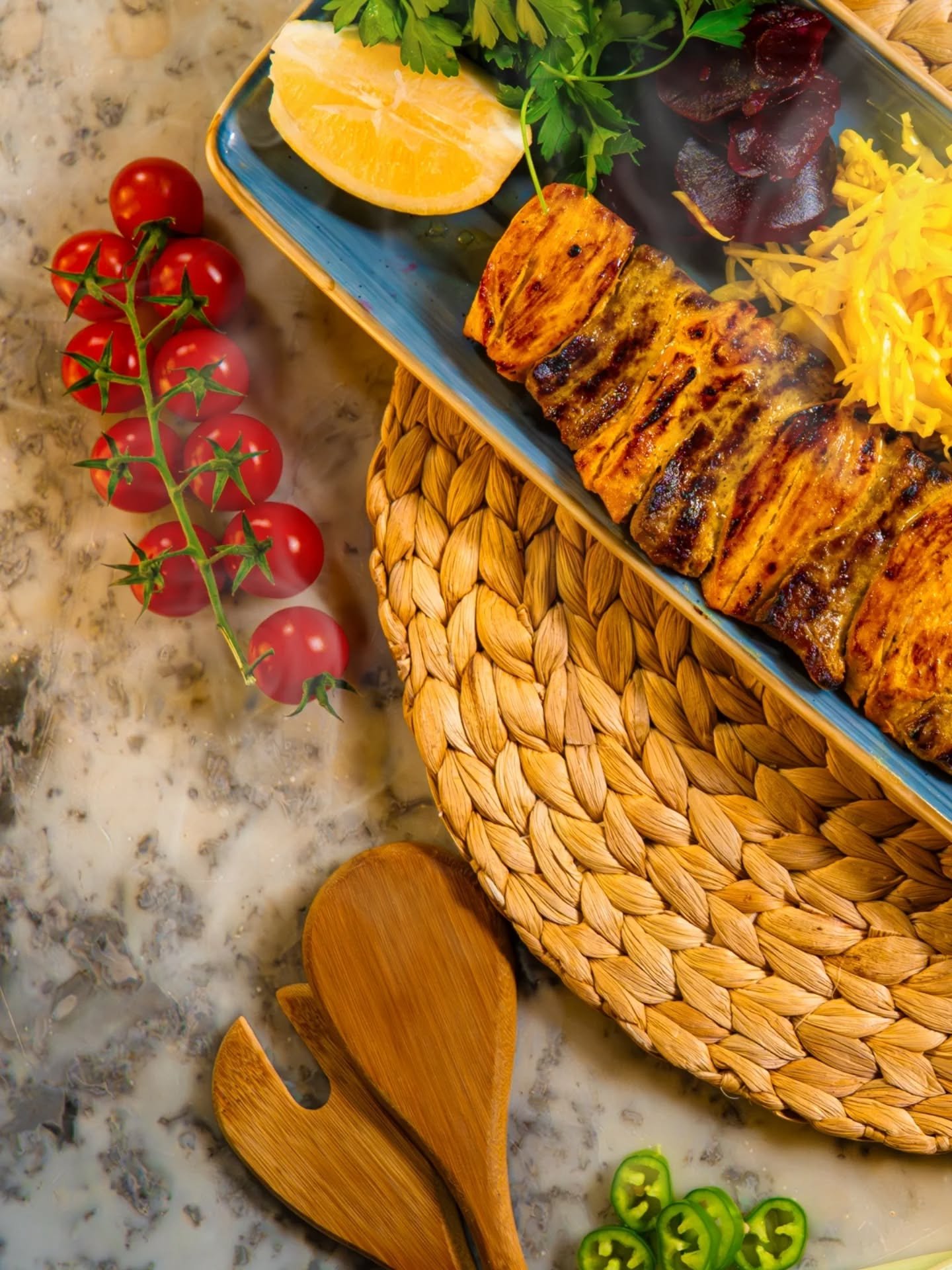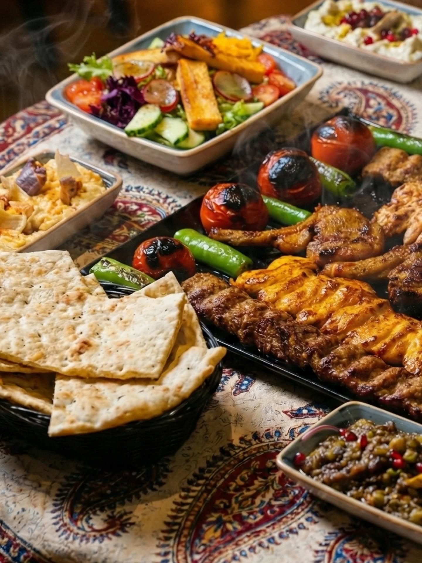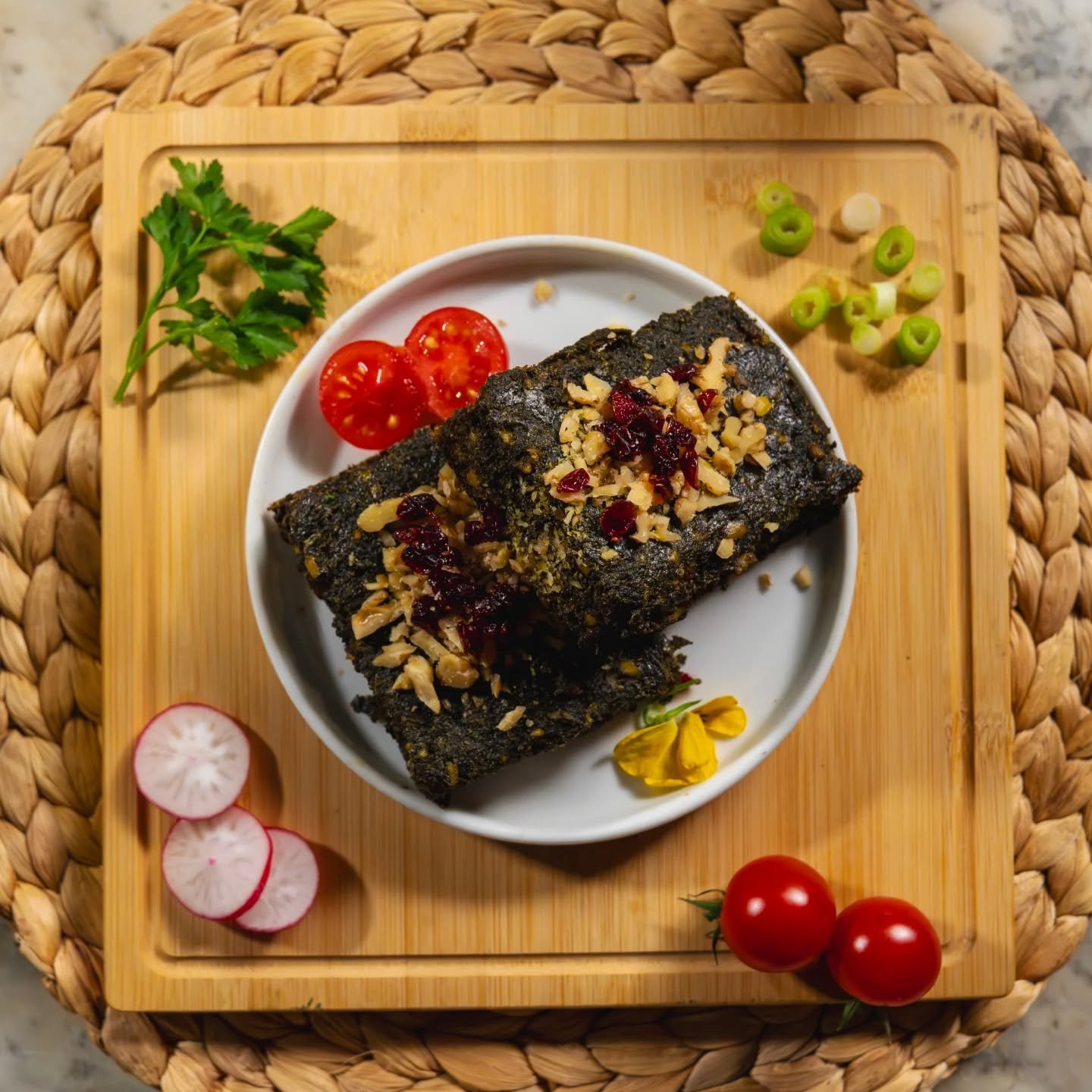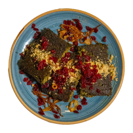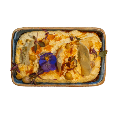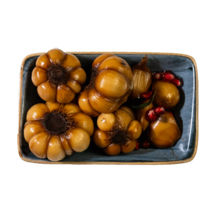 Smoked Japanese aubergine blended with ripe tomatoes, free-range eggs, and garlic, creating a smoky, savory, and comforting Persian classic. Perfect as a flavorful starter or side.