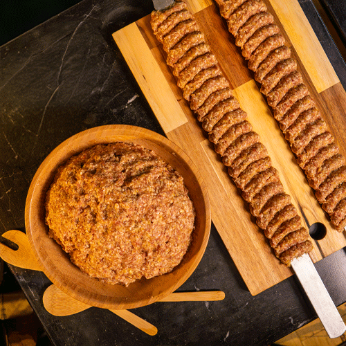 Chef Javad’s signature seasoned minced lamb, ready for home skewering.