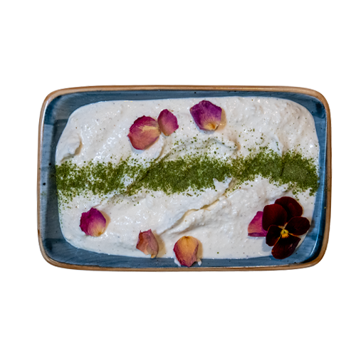 Our Mast-o-Musir features thick, creamy homemade yogurt, perfectly blended with finely diced musir – a unique variety of wild Persian shallot known for its distinct, mild garlicky flavour.