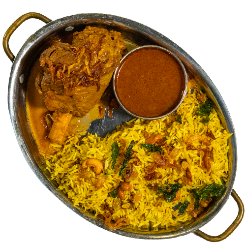 Indulge in Chef Javad’s Lamb Shank Biryani, a luxurious and hearty offering at one of London’s best Persian restaurants. This signature dish features a magnificent, premium lamb shank (Mahiche), slow-cooked for hours until perfectly tender and falling off the bone.