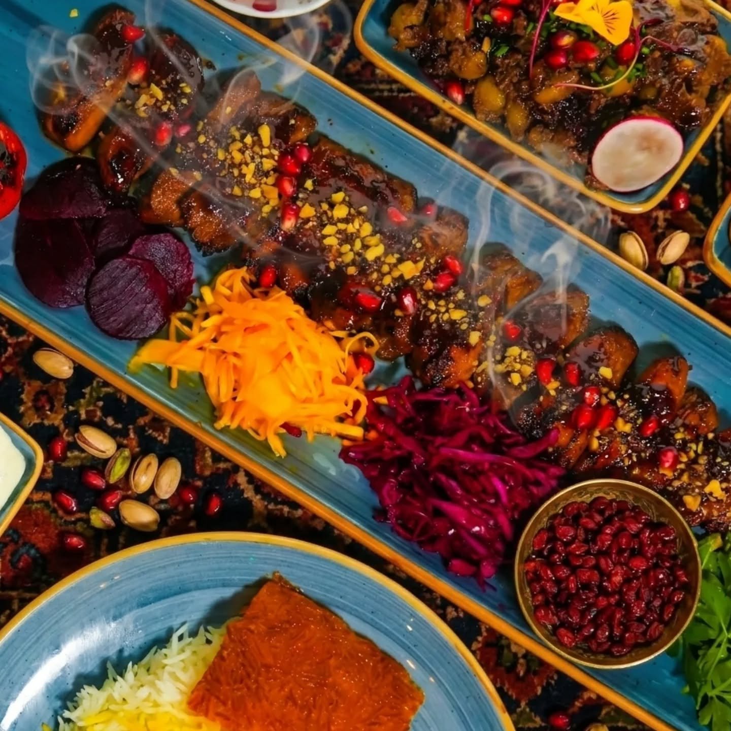 Discover the essence of Persian cuisine with our flavorful kebabs, aromatic stews, vibrant starters, and sweet, indulgent desserts—all crafted to transport your taste buds to Persia