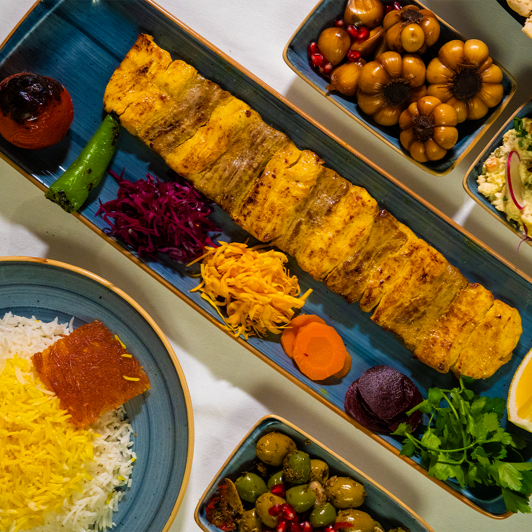Grilled skewer of marinated diced Lamb & Chicken fillet