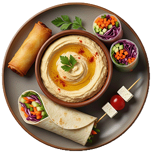 Fresh mint, tarragon with spring onion, radishes, Feta cheese, and walnuts